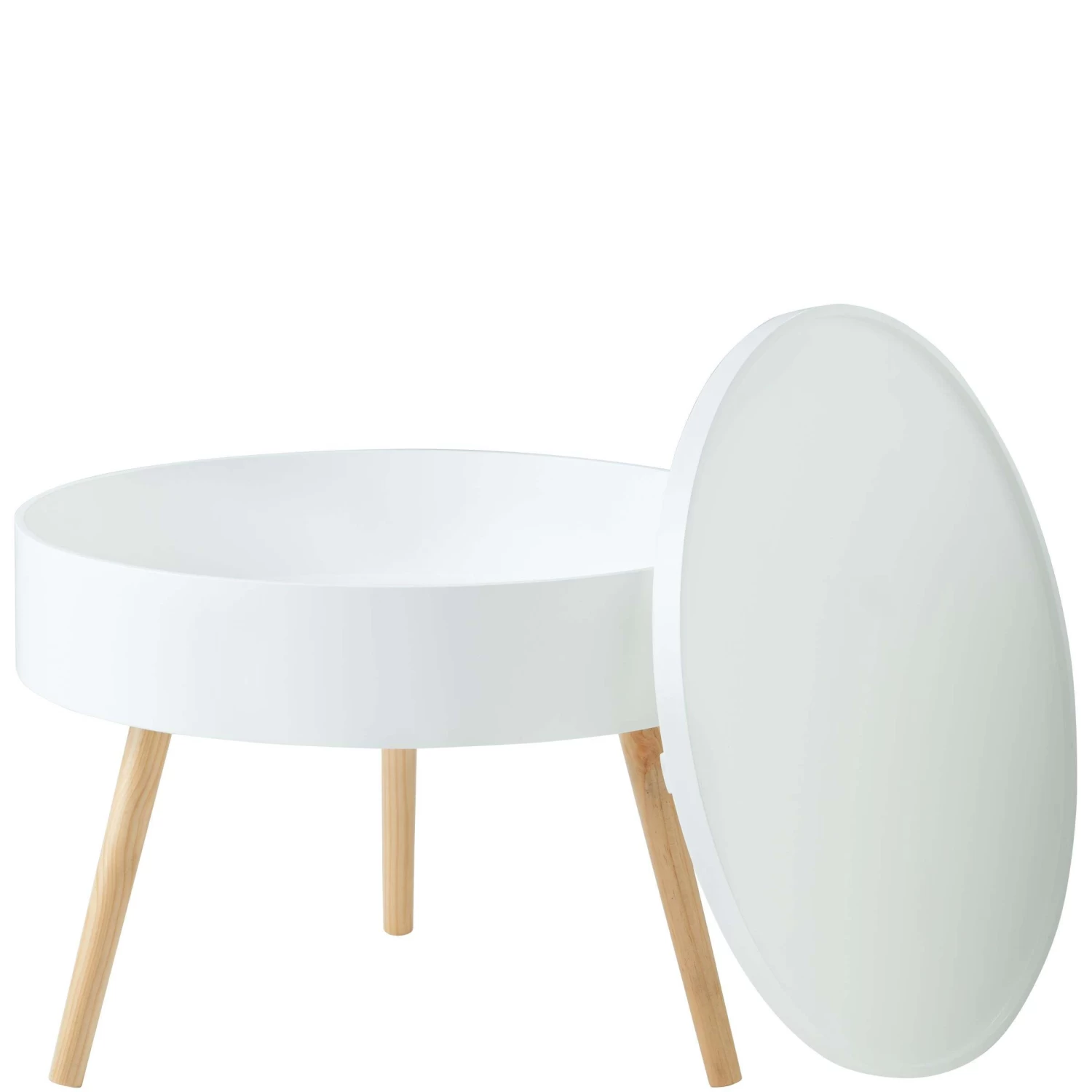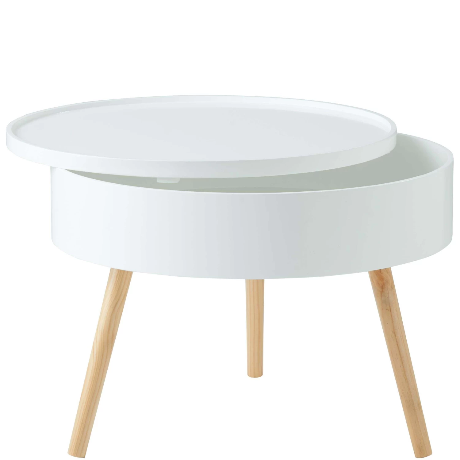 Tisch und Stauraum in einem: Unser komfortabler Coffee Time-Beistelltisch dient Ihnen als schönes Möbelstück mit Ablagefläche und verfügt gleichzeitig über ein platzsparendes wie praktisches Aufbewahrungssystem. Dazu einfach die Tischplatte entfernen. Und schon lassen Sie Zeitschriften, Fernbedienung oder Strickzeug in ihm verschwinden. Für genügend Stabilität sorgen die schrägen Tischbeine aus Pinienholz. Durch die Verwendung heller Farben und klarer Linien erinnert er an skandinavisches Design, was ihn zum zeitgemäßen, stylischen Wohnstück macht.