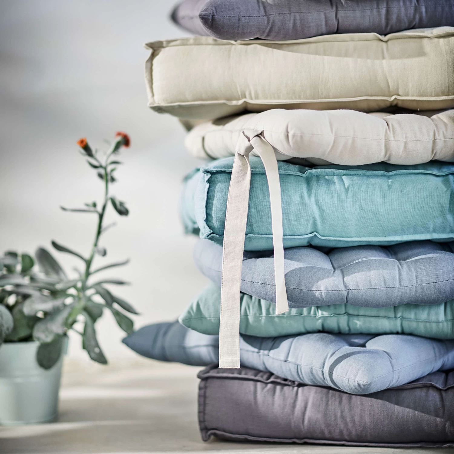 • Stuhlkissen Mit Bändchen L 35 X B 37cm SOLID In Türkis -Zuhause Dekoration Store butlers stuhlkissen mit bandchen l 35 x b 37cm solid in turkis