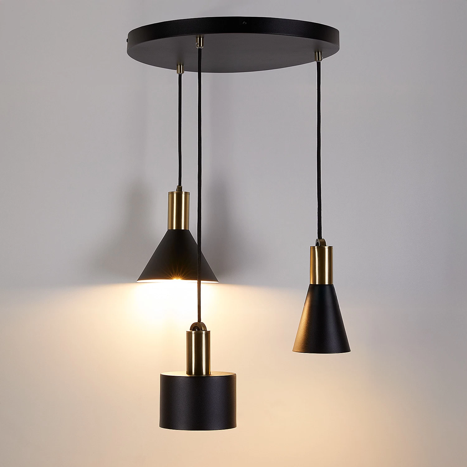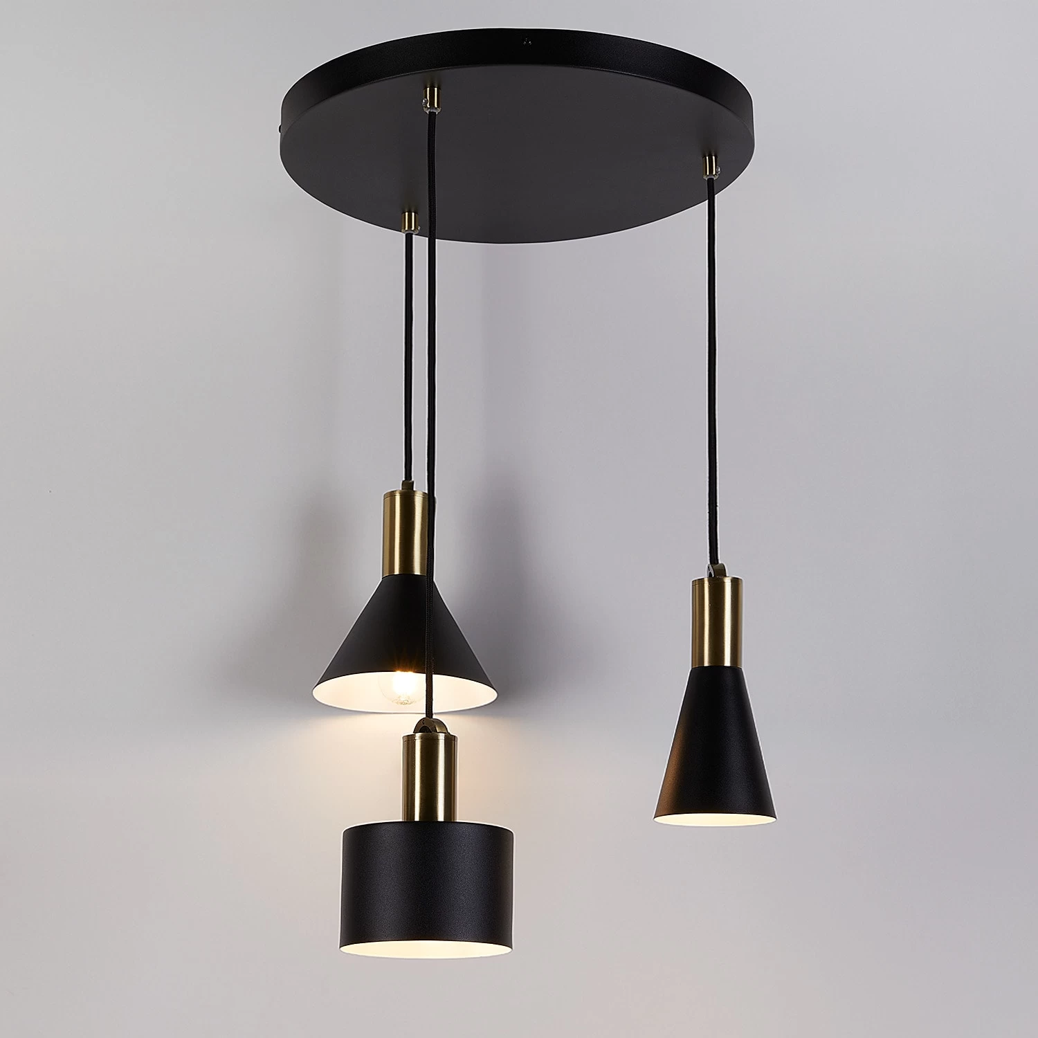 Inspiriert dich dazu, dein Zuhause mit Licht zu gestalten: Mit der höhenverstellbaren Inspyr Hängeleuchte 3-flammig kannst du deinen Wohnbereich modern aufwerten. Die Hängelampe kombiniert dabei drei unterschiedliche Leuchtenelemente und setzt für einen coolen Look auf reduziertes Design, schwarzes Metall mit matter Oberfläche und Textilkabel. Für den rundum stimmigen Look sind außerdem Inspyr Wandleuchten, Tischleuchten, Stehleuchten und Pendelleuchten erhältlich.