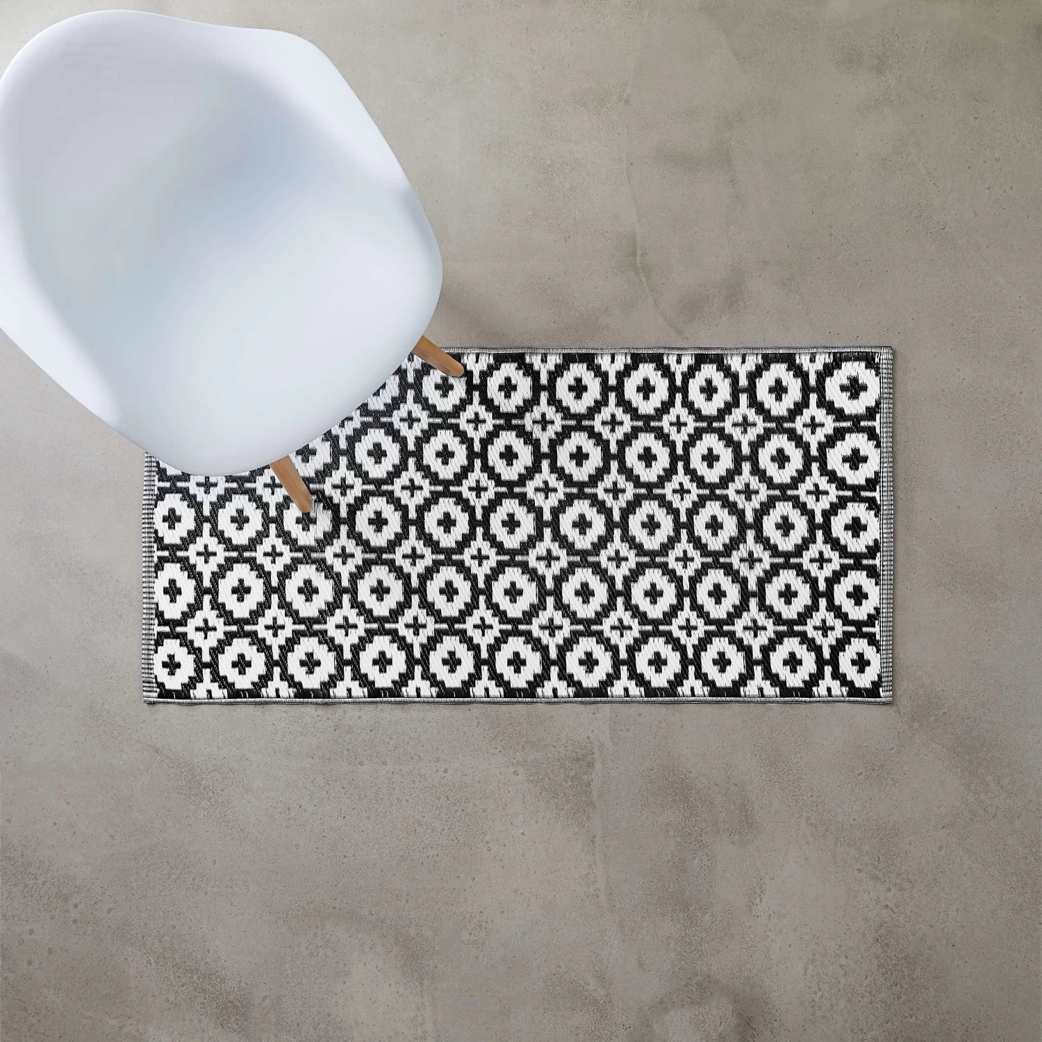 Weil Sie auf wohnlich und zugleich pflegeleicht stehen, legen Sie sich den modernen Colour Clash Outdoorläufer mit schwarz-weißem Mosaik-Muster und Bastteppich-Struktur zu Füßen. Und das nicht nur auf Ihrem Balkon oder Ihrer Terrasse, sondern gerne auch indoor im Wohnbereich. So läuft es sich drinnen wie draußen spürbar angenehm. Aus robustem Kunststoffgewebe, UV-beständig.