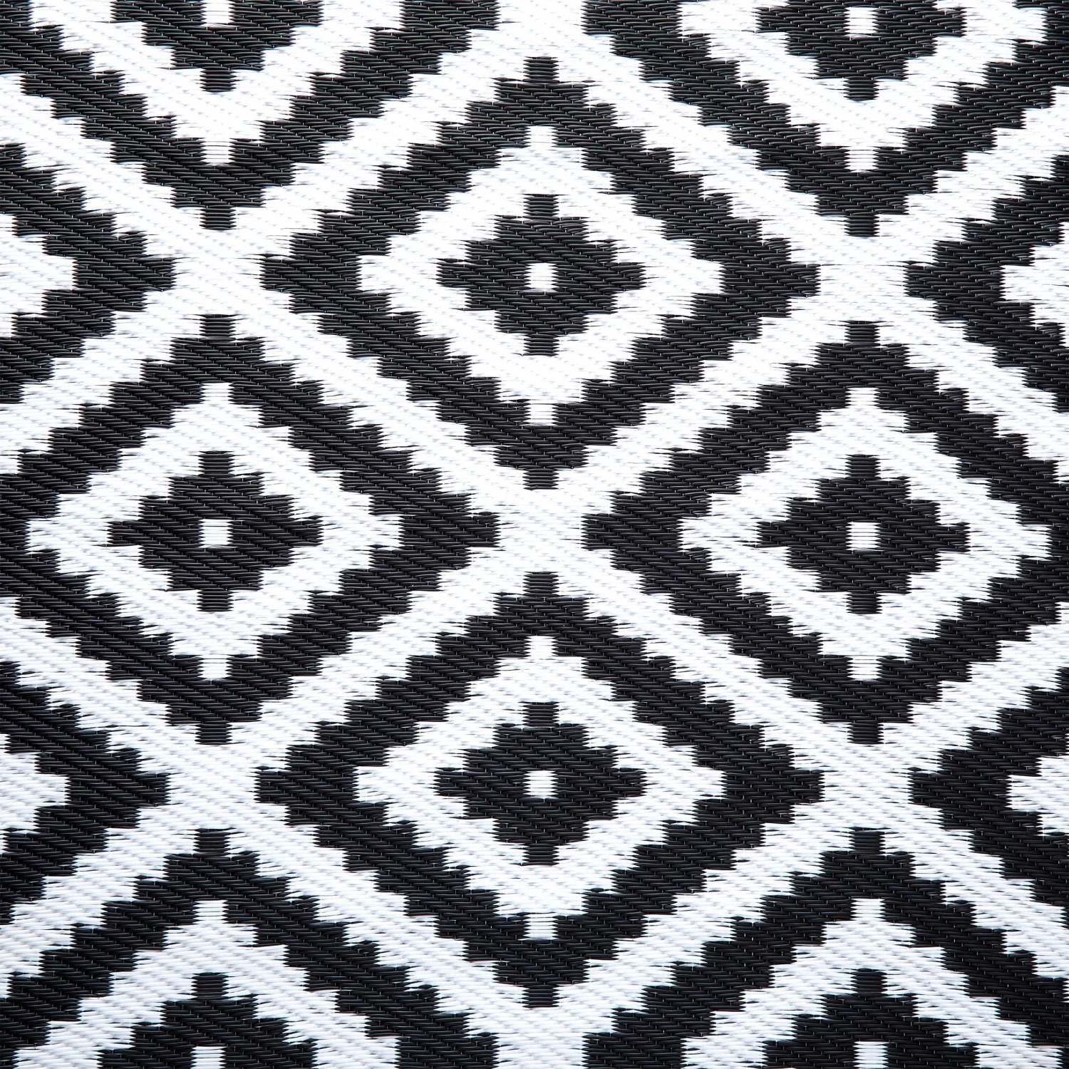 Weil Sie auf wohnlich und zugleich pflegeleicht stehen, legen Sie sich den modernen Colour Clash In- & Outdoorteppich mit schwarz-weißem Ethno- & Rauten-Muster und Bastteppich-Struktur zu Füßen. Und das nicht nur auf Ihrem Balkon oder Ihrer Terrasse, sondern gerne auch indoor im Wohnbereich. So läuft es sich drinnen wie draußen spürbar angenehm. Aus robustem Kunststoffgewebe, UV-beständig.