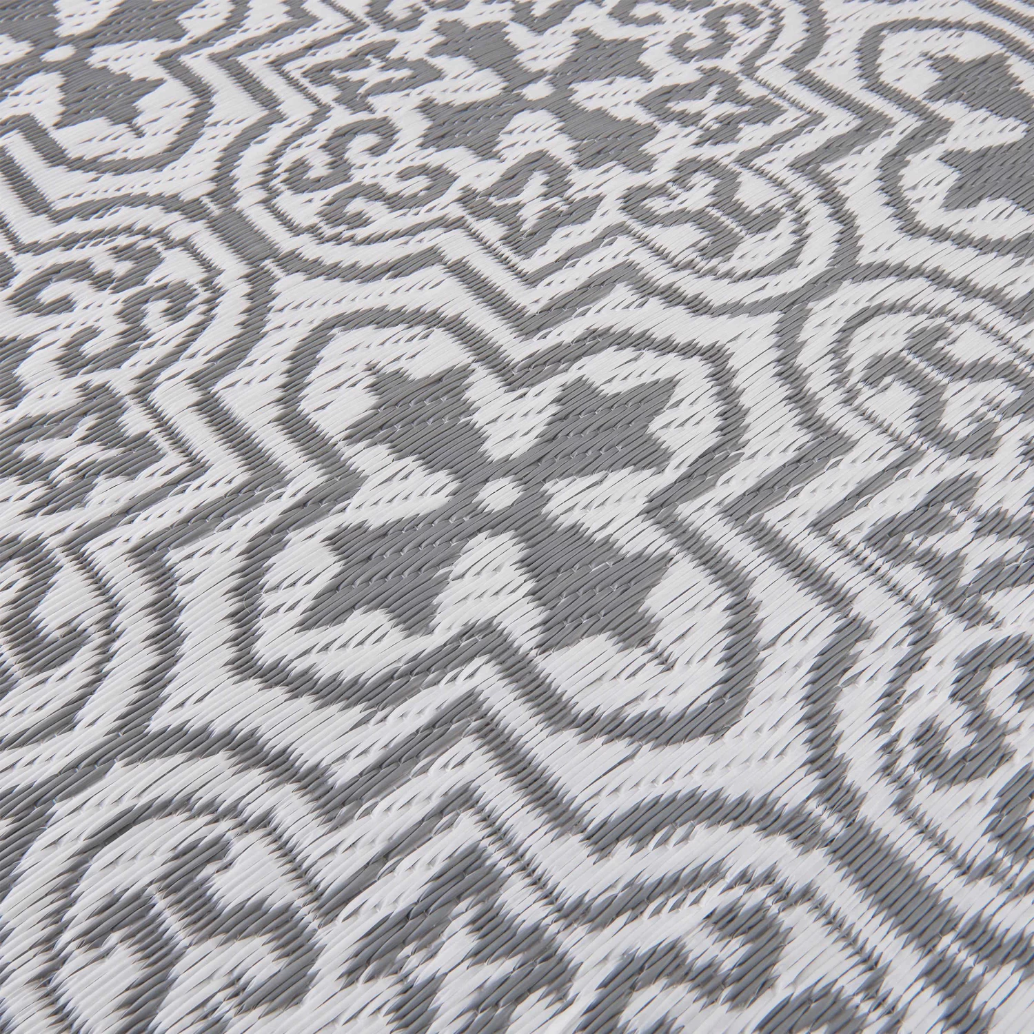 Weil Sie auf wohnlich und zugleich pflegeleicht stehen, legen Sie sich den modernen Colour Clash Outdoorteppich mit grau-weißem Kachel-Muster und Bastteppich-Struktur zu Füßen. Und das nicht nur auf Ihrem Balkon oder Ihrer Terrasse, sondern gerne auch indoor im Wohnbereich. So läuft es sich drinnen wie draußen spürbar angenehm. Aus robustem Kunststoffgewebe, UV-beständig.