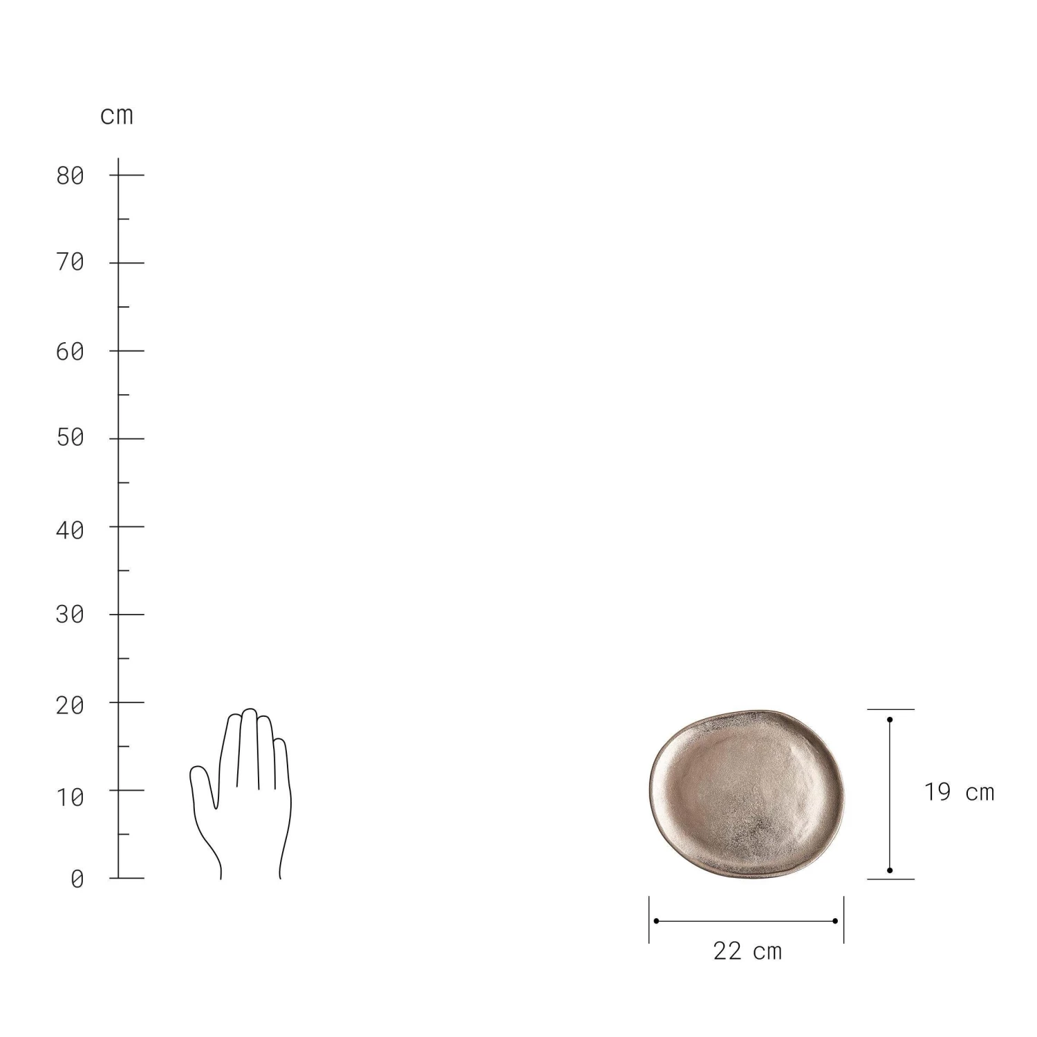 Aus einem früheren Jahrhundert könnte der Banquet-Teller Ø 22 cm mit seinem gold-farbenem Glanz und seiner strukturierten Oberfläche stammen. Und genau wie damals verschönert er die Tafel und den Raum mit seiner organischen Form. Aus Aluminium, mit Softpads an der Unterseite.