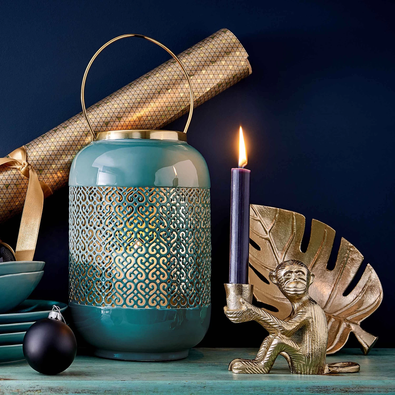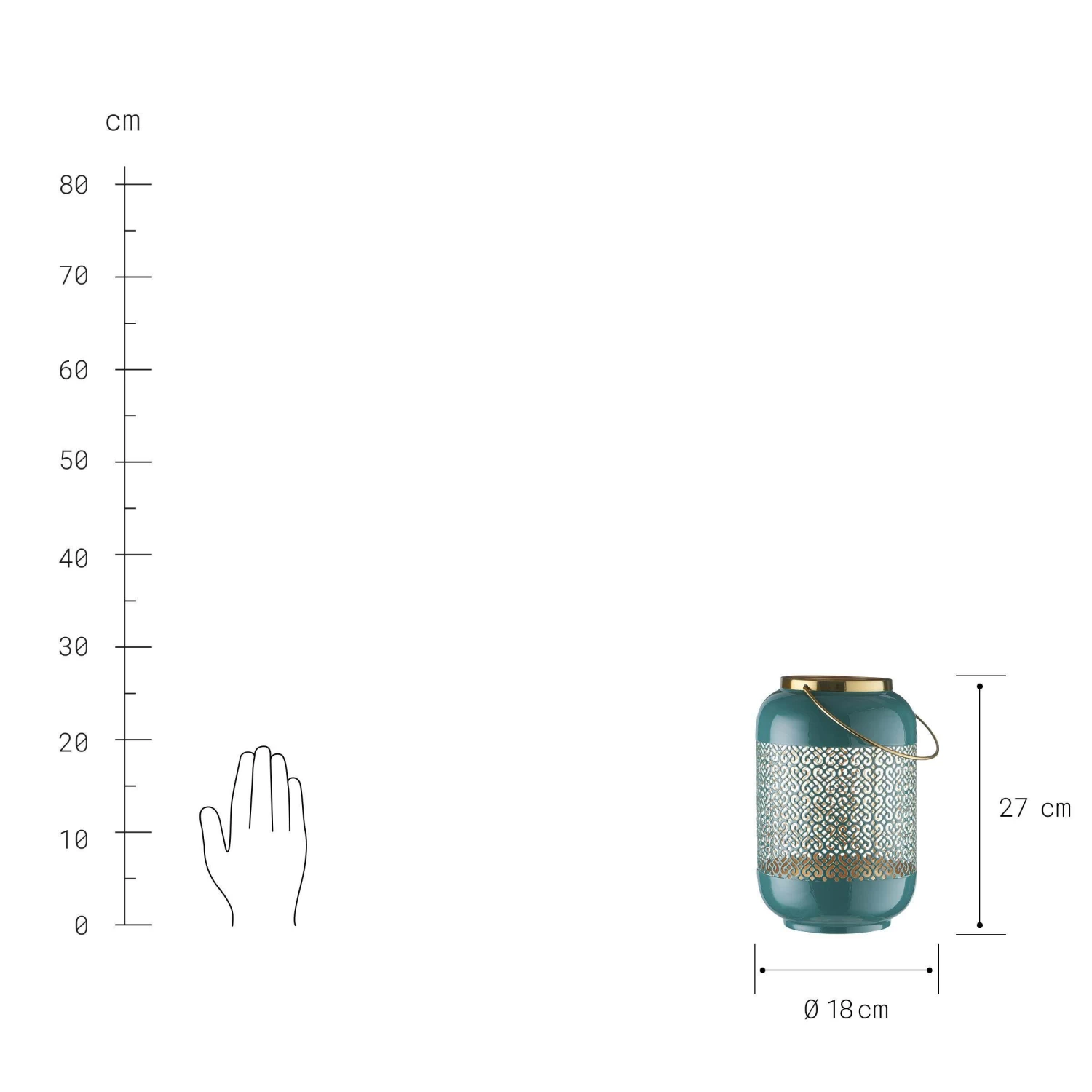 Metallische Effekte und durchbrochene Ornamentik: Als stylische Deko-Queen lässt es die Emilie Metall Laterne so richtig funkeln in Ihrem Zuhause, zum Beispiel auf Regal, Anrichte oder Sideboard. Oder Sie nehmen die schöne Laterne abends mit auf Balkon oder Terrasse und genießen gemeinsam romantische Stunden.