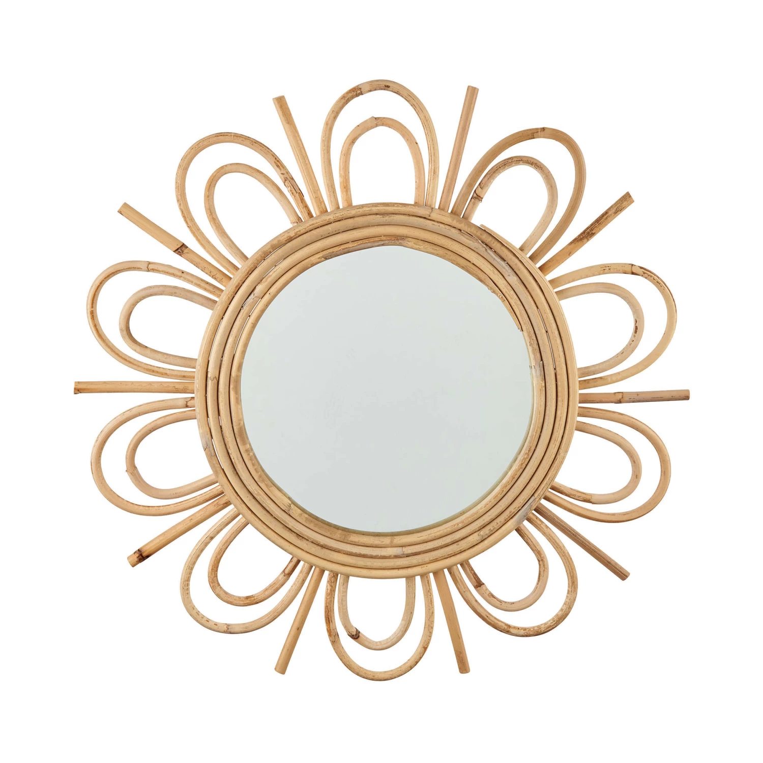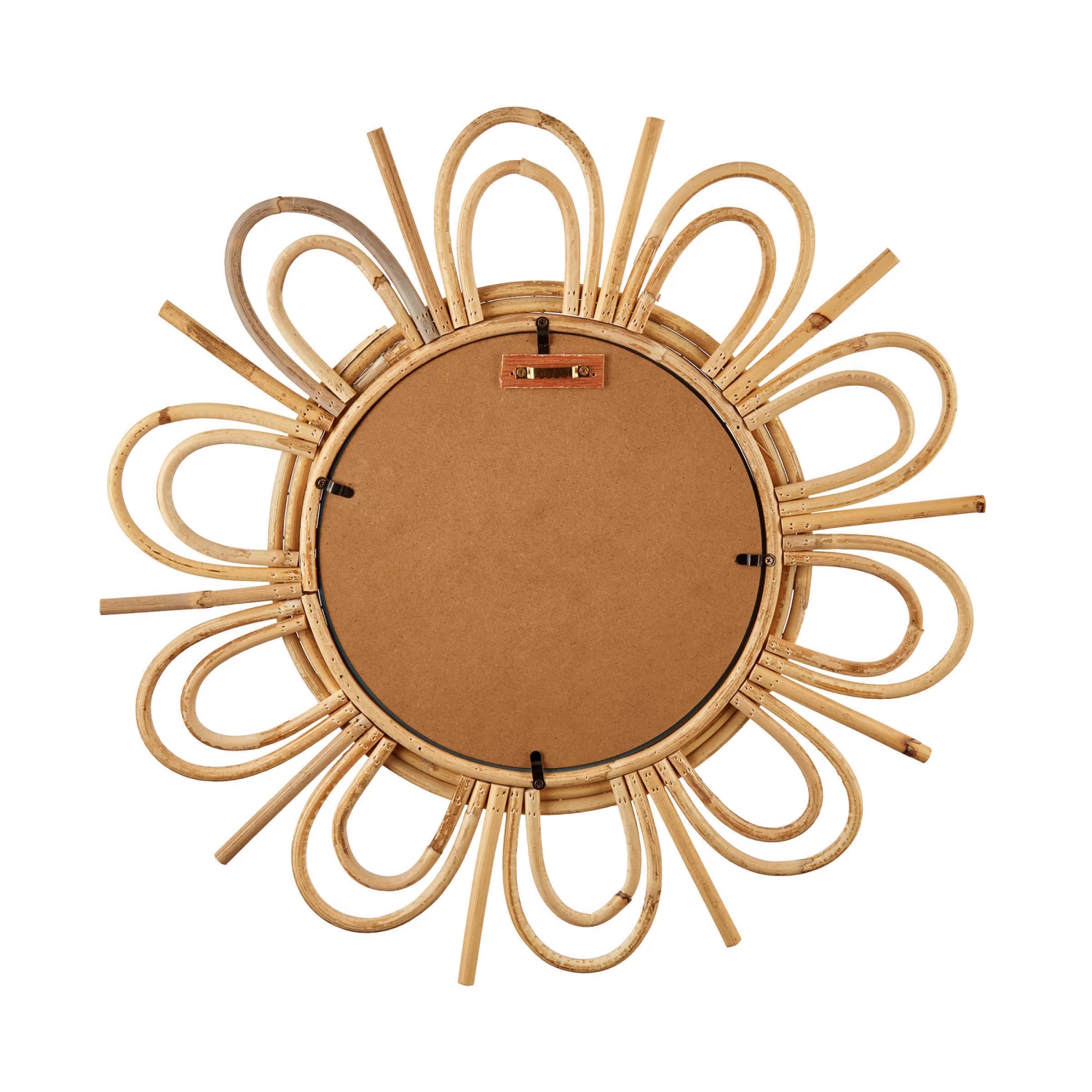 Ein bisschen Ibiza-Flair für Ihre Wohnung: Der handgearbeitete Cottage Rattan Spiegel blumenförmig spiegelt das mediterrane Lebensgefühl wider, sonnig und voller Natürlichkeit. Solche Boho-Akzente stehen Ihrem Flur und wirken ebenso dekorativ im Wohn- und Schlafbereich. Weitere Varianten erhältlich.