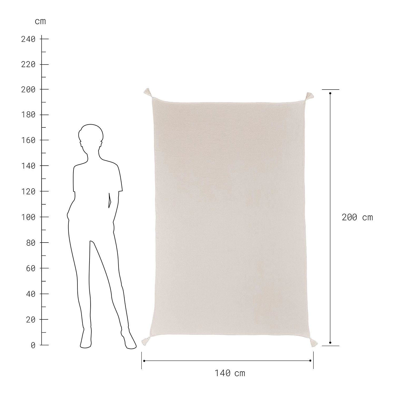 – HONEY COMB TAGESDECKE: Diese Decke mit Tasseln L 200 x B 140cm bietet Ihnen die perfekte Größe zum Einkuscheln und ist ideal für gemütliche Abende auf Balkon oder Terrasse oder als stilvolle Dekoration in Ihrem Zuhause.