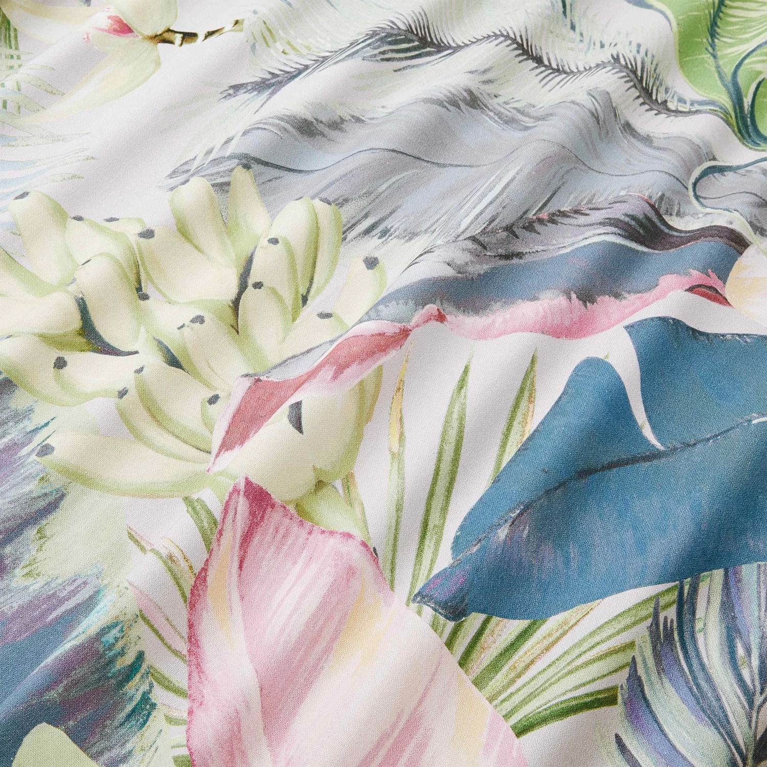 Tropische Muster und helle, pastellige Farben: Diese Kombination ist neu, überraschend und wunderschön bei der Beyond Bali Tischdecke 160 x 160 cm aus Baumwolle. Mit ihrem angesagten Design bringt diese Tischdecke Summervibes in Ihr Zuhause und lädt dazu ein, den Esstisch mit Holz, Rattan und anderen Naturmaterialien zu dekorieren. Die Beyond Bali Tischwäsche-Serie umfasst Tischdecken in verschiedenen Größen, einen Tischläufer und Stoffservietten.