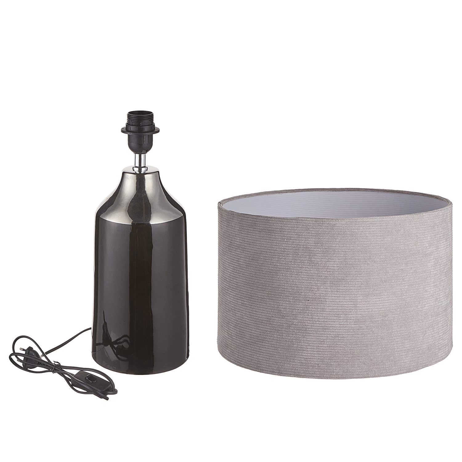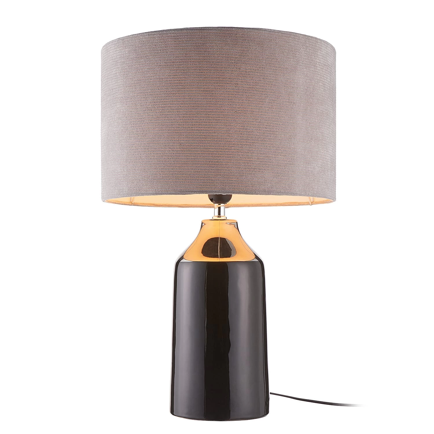 Moderne Eleganz: Diesen angesagten Trend beherrscht die Front Row Tischleuchte in Grau perfekt. Der Keramikfuß mit glänzendem Metallic-Finish findet in dem mit samtigen Cord-bezogenen Schirm einen spannenden Gegenpart. Wohnlichkeit und Stil treffen hier zusammen – und setzen in deinem Zuhause einen edlen Akzent. In einer weiteren Variante erhältlich.
